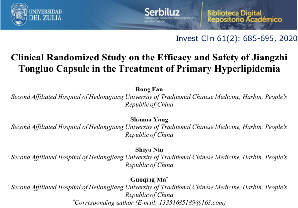 降脂通络软胶囊有效性及安全性研究成果在SCI期刊《INVESTIGACION CLINICA》上发表