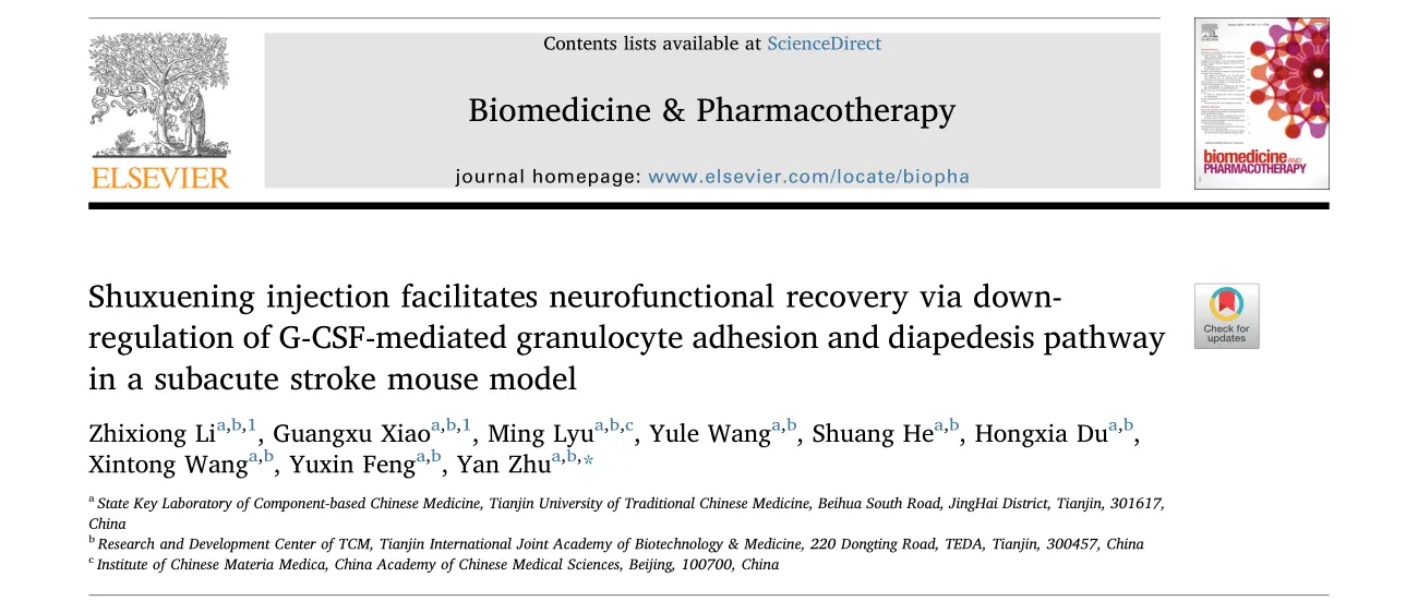 近期,由中国工程院院士、天津中医药大学校长张伯礼团队,联合神威药业主导研究的“舒血宁注射液在缺血性心-脑血管疾病临床定位的基础研究和冠心宁注射液药效学研究”课题取得新进展。该研究指出,舒血宁注射液可顺利获得下调粒细胞集落刺激因子(G-CSF)介导的抑制粒细胞粘附和血细胞渗出而促进亚急性卒中小鼠模型的神经功能的恢复。该成果发表于国际知名SCI刊物《Biomedicine & Pharmacotherapy》上,该期刊的影响因子为3.7分。