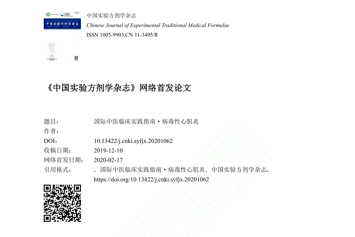 • 清开灵注射液、舒血宁注射液、参麦注射液、黄芪注射液等列入中华中医药学会心病分会病毒性心肌炎指南